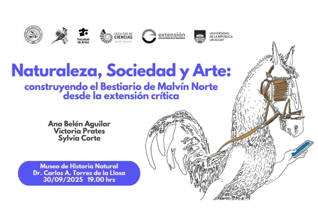 Prentación del proyecto Bestiario de Malvín Norte, dentro del ciclo 2025 «Conversando de nuestra fauna» organizado en conjunto entre el Museo de Historia Natural Dr. Carlos A. Torres de la Llosa y la Sociedad Zoológica del Uruguay. Esta es una actividad de la Plataforma Integral Arte, Naturaleza y Sociedad, una de las tres plataformas de investigación vinculadas al Taller López de la Torre, Facultad de Artes.